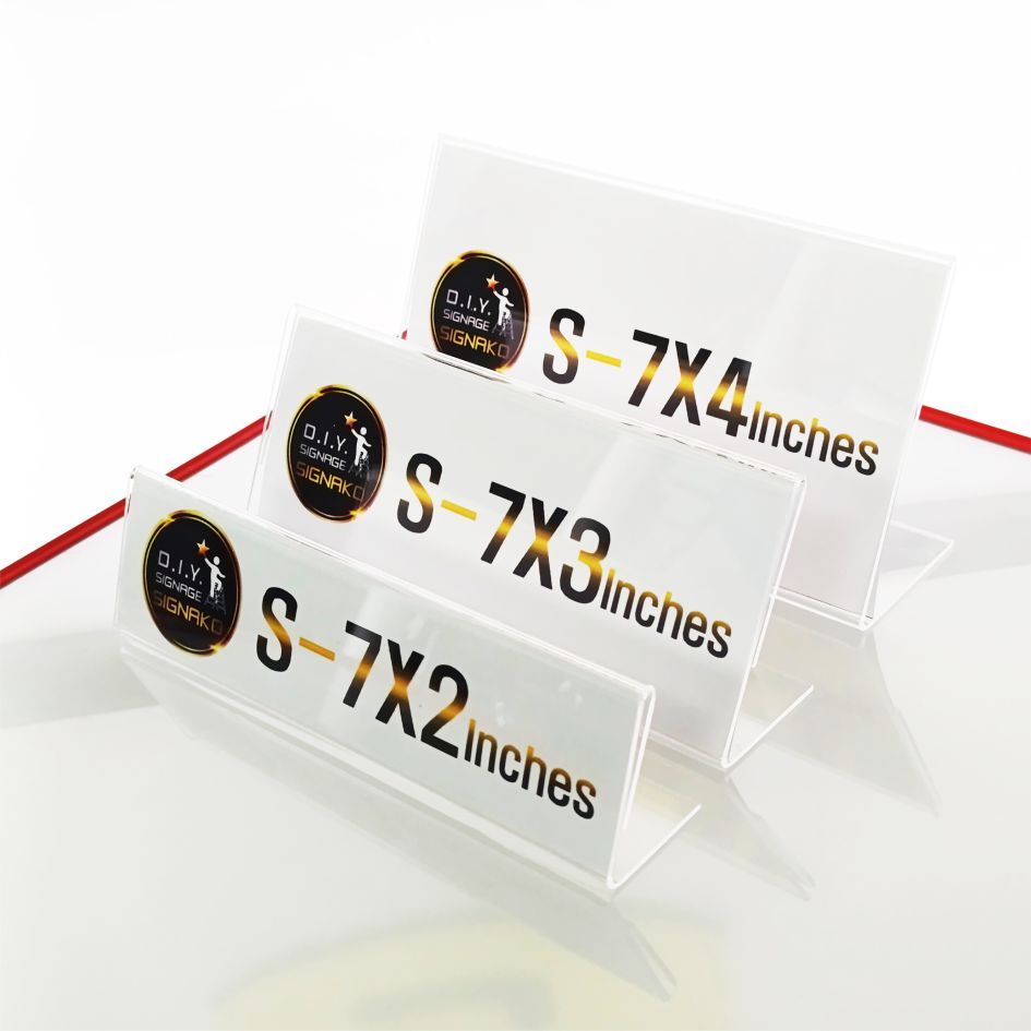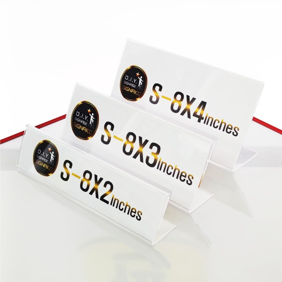 Clear Acrylic Single Sided Stand / SLANT Table Name Sign Holder Landscape Desk Name Plate Display L
