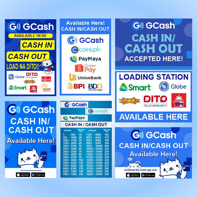 Gcash Banner Tarpaulin Paymaya Shopee Pay Cash-in Cash-out Smart Globe Rates Load Bills Payment Tarp